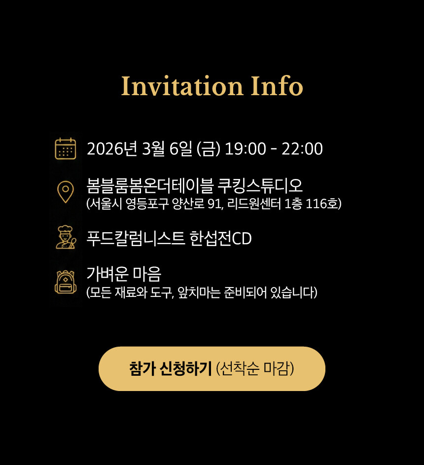 장소 : 봄블룸봄온더테이블 쿠킹스튜디오